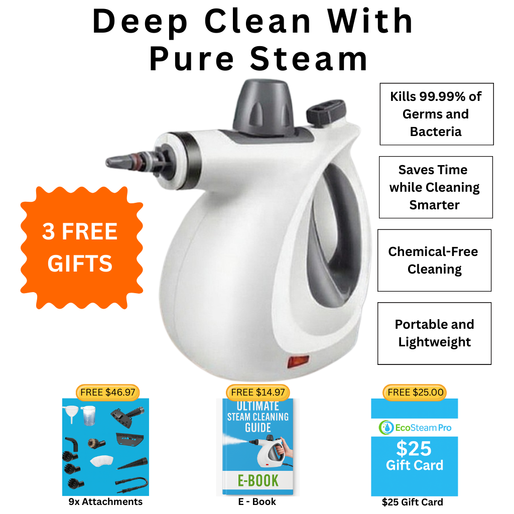 The EcoSteam Pro™ isn’t just another handheld cleaner, it’s your #1 All-Purpose steam cleaner for deep cleaning, sanitizing, and refreshing any surface with ease. Designed for performance, portability, and precision, it delivers professional-grade results without chemicals. Whether it’s grime in the kitchen, stains on upholstery, or bacteria on hard surfaces, EcoSteam Pro™ gets it spotless, naturally.